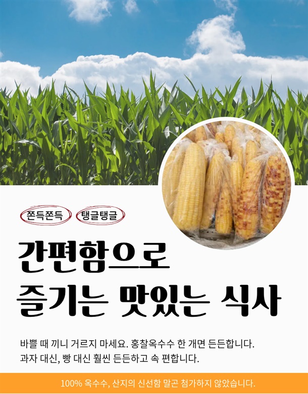 밥 챙겨 먹기 귀찮은 날, 옥수수 하나 쪼개 드시면 배도 안고프고 속도 편합니다.