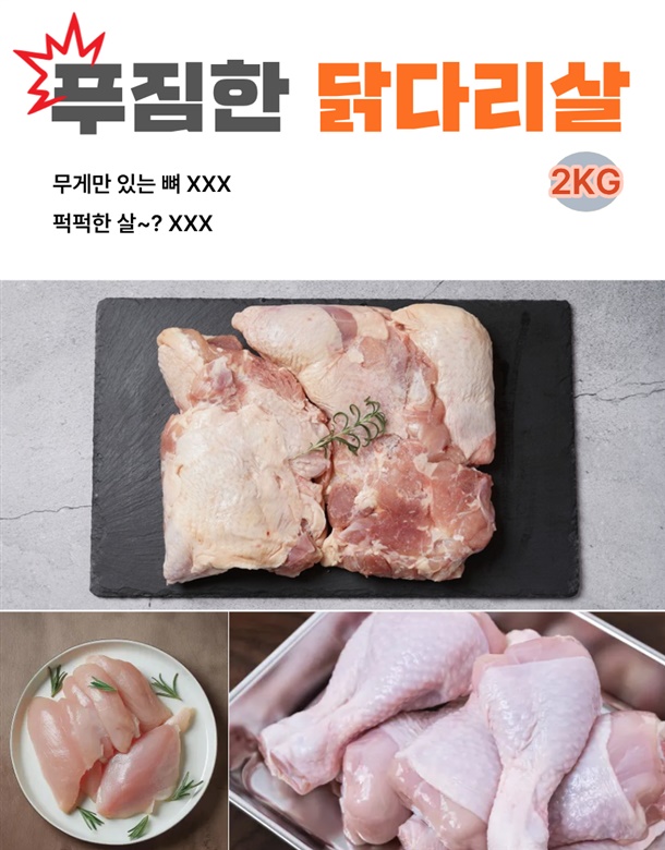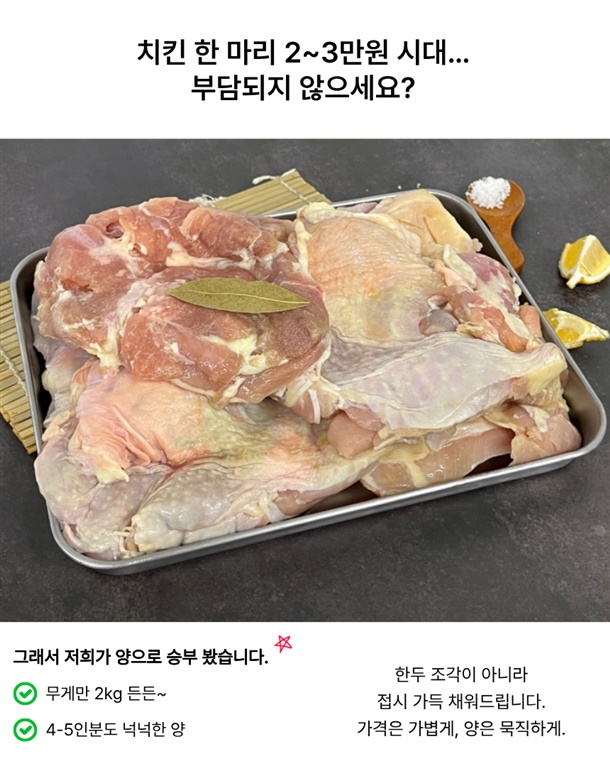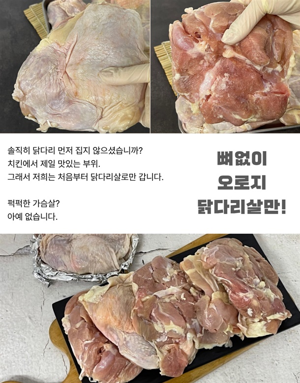 야들야들 부드러운 닭다리살만 푸짐하게 2kg 담았습니다. 말그대로 양폭탄!!