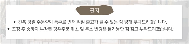 · 구매자가 배송지 주소를 잘못 기입한 경우, 반송/재발송 모두 택배비를 부담하셔야 합니다. (꼭 정확한 주소를 기입해 주세요)