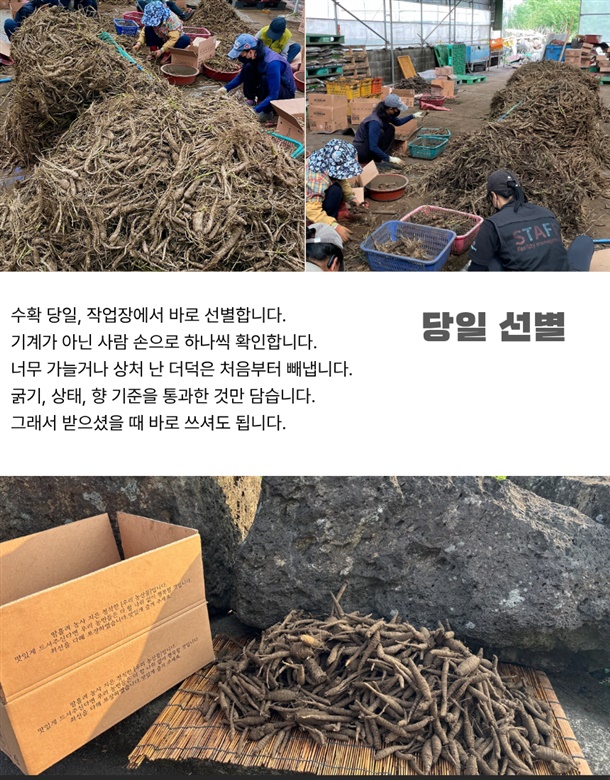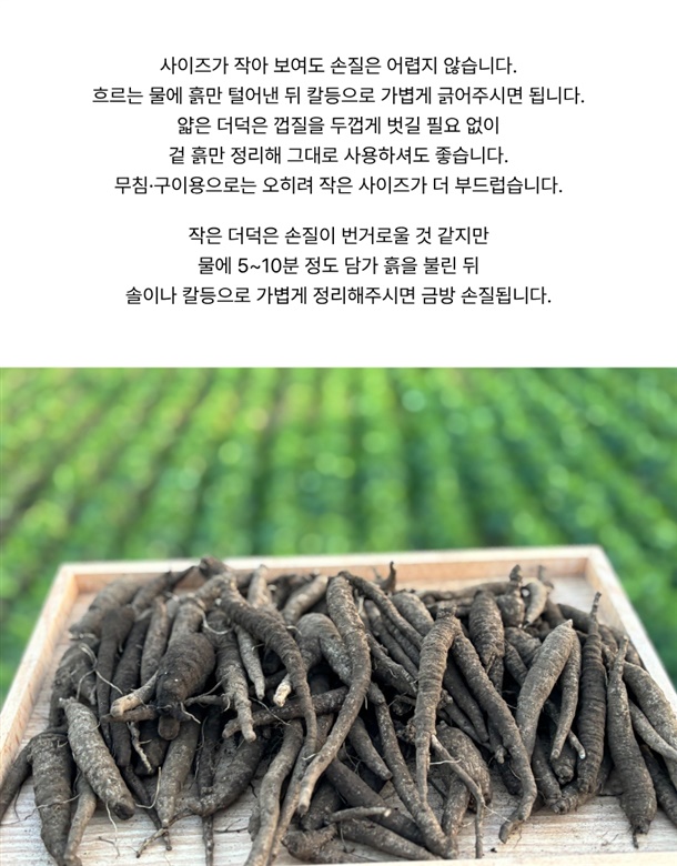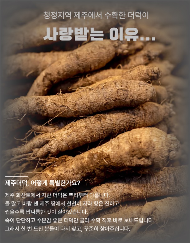 제주 화산토에서 자란 더덕, 진한향에 단맛까지 더해 완벽한 더덕입니다.