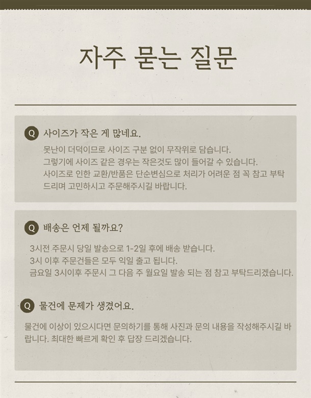 · 상품 불량 사유와 사진을 남겨 주시면 빠른 처리가 가능합니다.